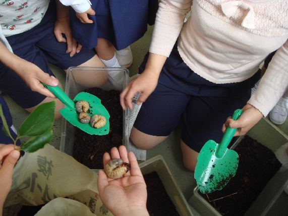 なるなる畑では、クラス毎に育てている野菜がすくすくと育っています。