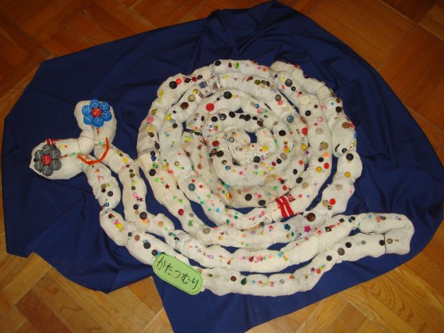 以前、ブログでお伝えした製作風景・・・黄組さんが作っていた長ーいものはかたつむりに変身しました!