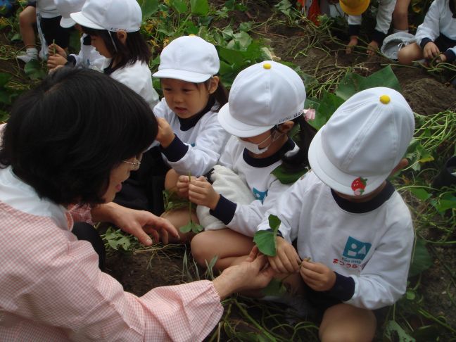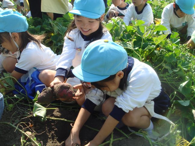 まずは、眞野さんにおいもの掘り方を教わって・・・。