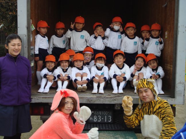 いつも配達に使っているトラックに乗って園庭にきてくれました。