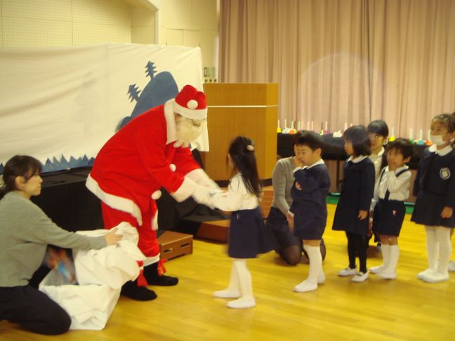 サンタクロースさん、鳴海ヶ丘幼稚園に来てくれてどうもありがとう