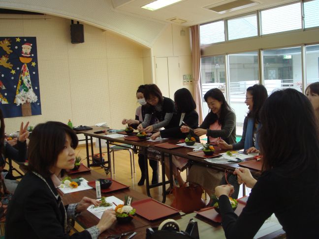 みなさん、楽しくおしゃべりしながらお正月飾り作りを体験されていました