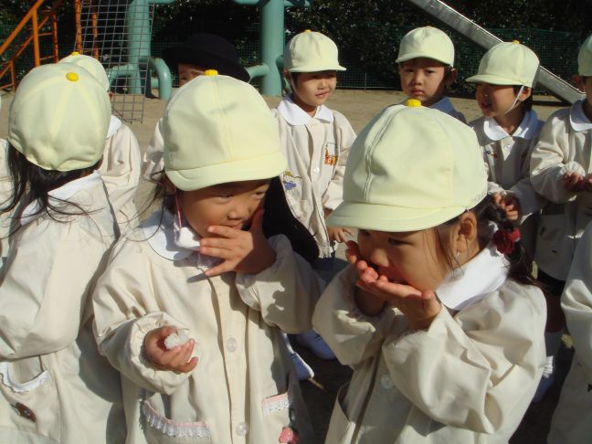 おもちをつく前に、もち米をみんなですこしずつ食べてみました。