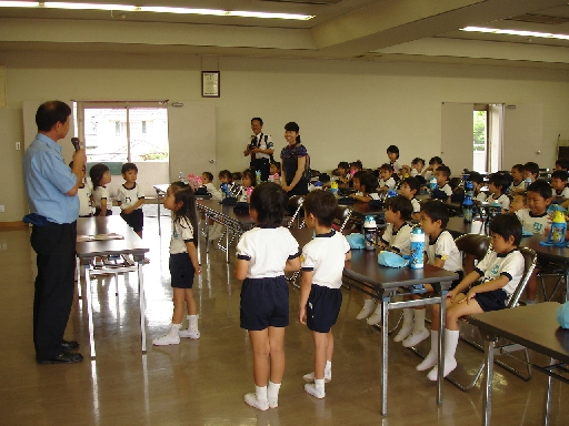 園長先生といっしょに恒例の夏休みのお約束をしました。