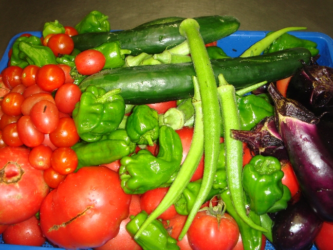 竹筒で炊いたほかほかご飯、焼きそば、いろいろな野菜・・・もりだくさんのお昼ご飯ができあがりました。