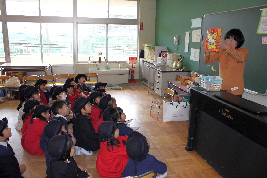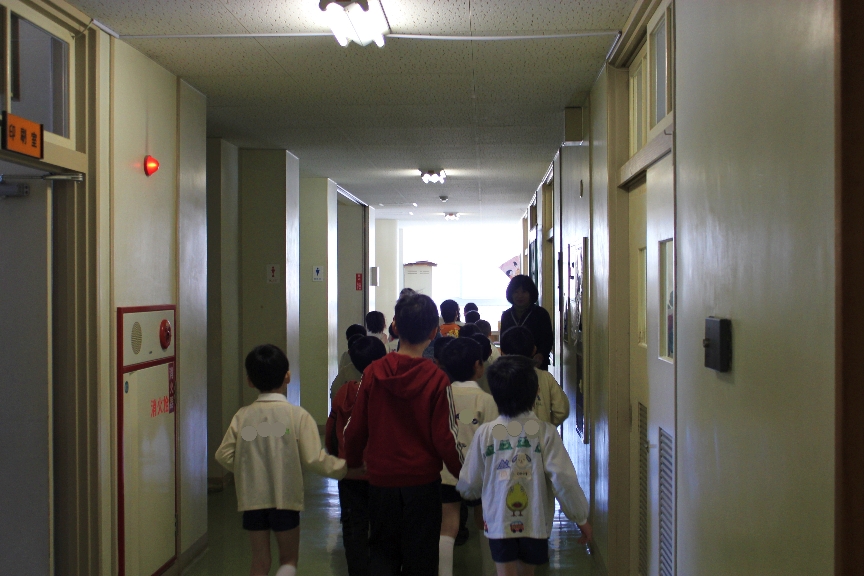 以前にも、東丘小学校におじゃましたことのある青組のみんなですが、今回はもうすぐ小学生になるということで、小学校の中を見学させていただきました。