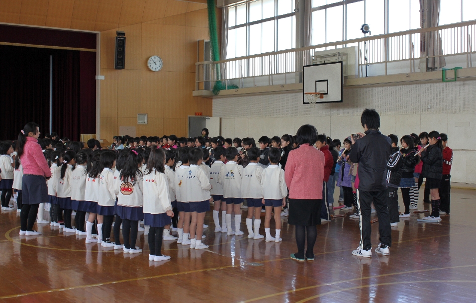 小学校の体育館では、3年生のお兄さんお姉さんが待っていてくれました。
