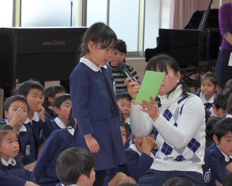 お別れの言葉。青組代表のお友達がとても立派に発表してくれました。