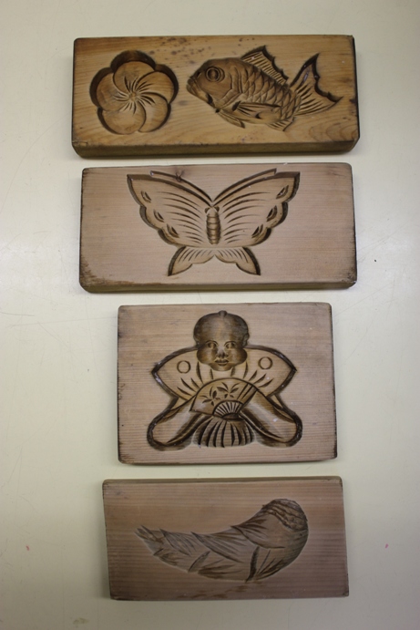 それから、鯛やお花の木型にいれて形を作って蒸すんですよ☻