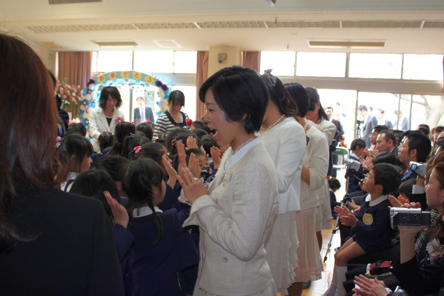 今日は感謝の気持ちをこめて、青組さんを拍手で迎えました。