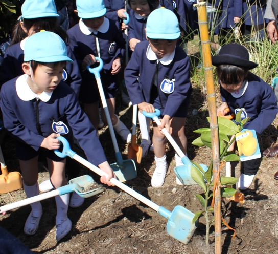 まずはじめに、修了記念品である砂場、レモンの木の目録の贈呈が行われました。