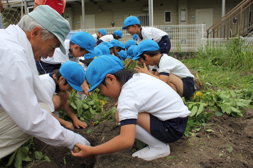 おぉ、土の中からおいもさんが見えてきたよ!がんばってほってね~。