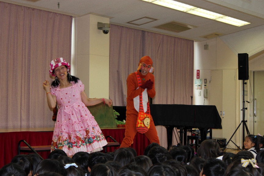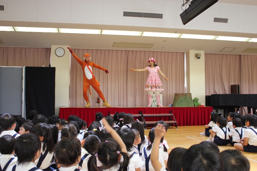 6月8日 縦割り保育で、「ゆかりんとさる君の出張童謡コンサート」を観ました♫