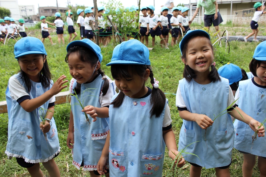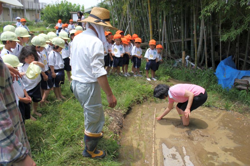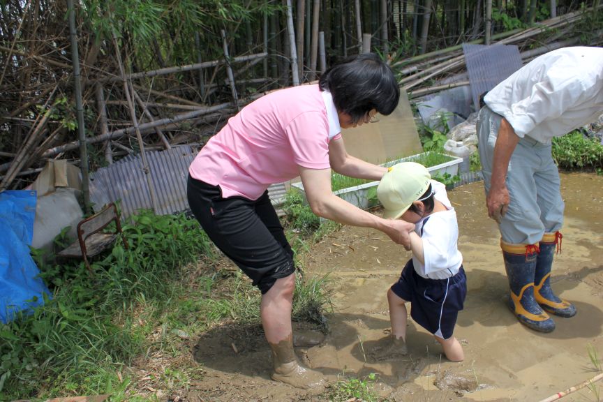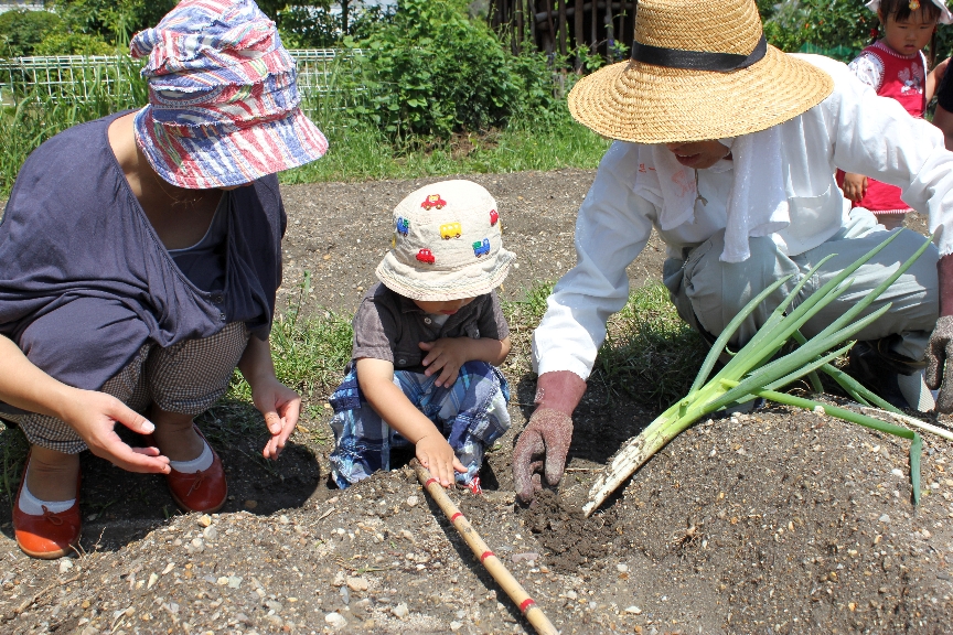 さっそく、みんなもお母さんといっしょに苗を植えました。