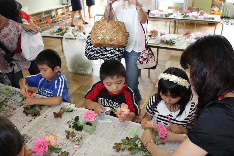 女の子はもちろん男の子もたくさん来てくれて、バラやカスミ草などを小さな
