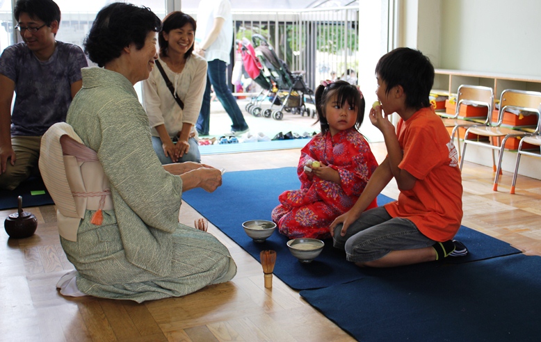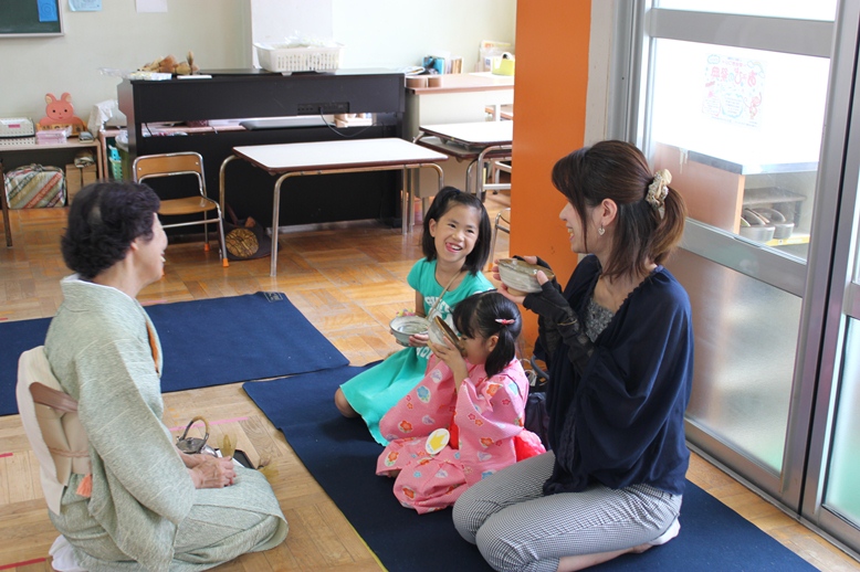 自分でお抹茶をたててお菓子といっしょにいただきました。お味はどうだったかな?
