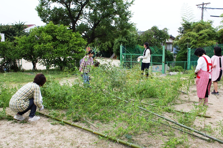 子どもたちが持ち帰る用の笹は、若草会の役員の方とプチボランティアの方に