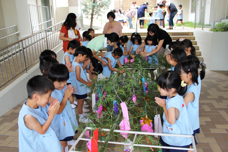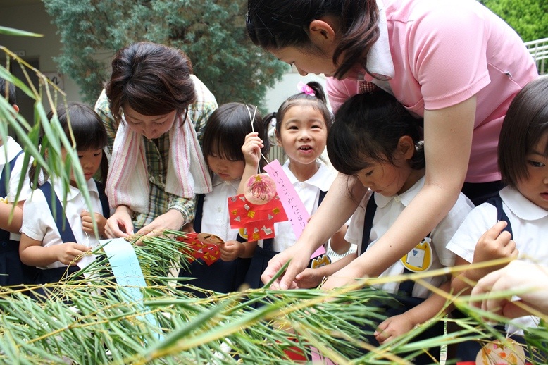 園でも子どもたちが短冊にお願いごとを書き、七夕飾りを作りました。