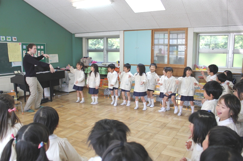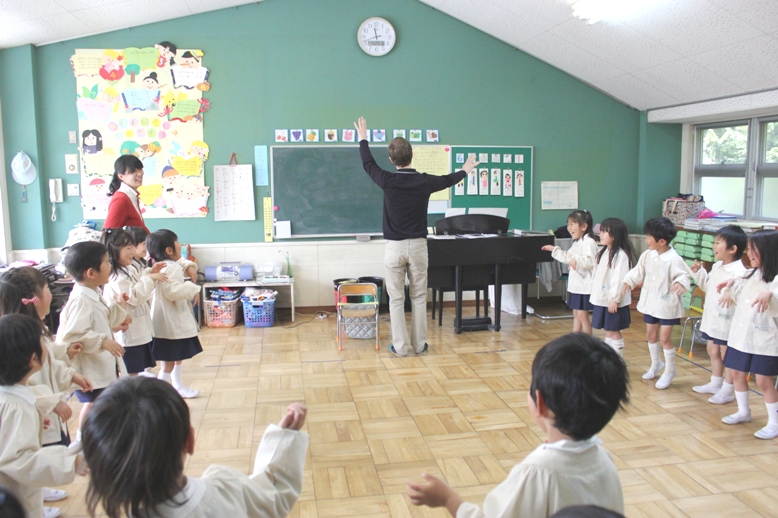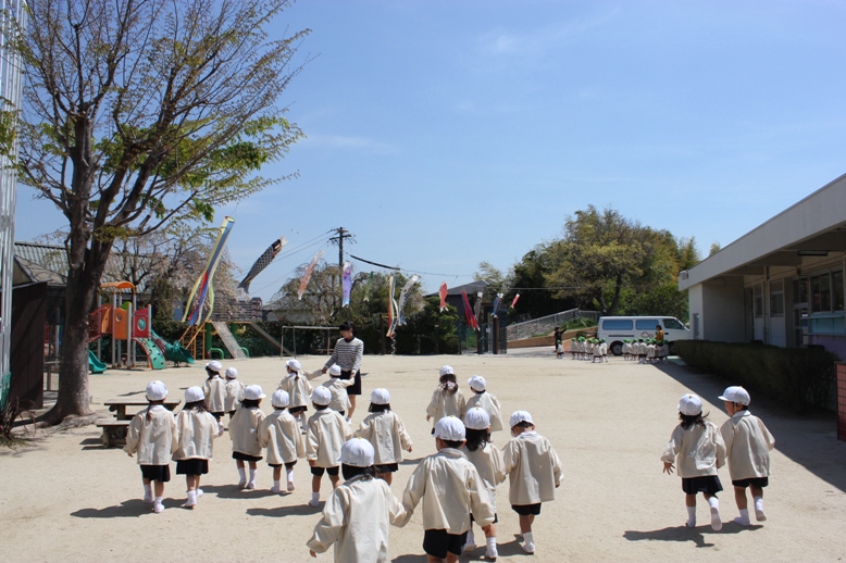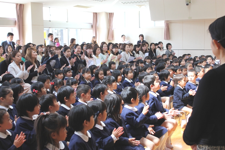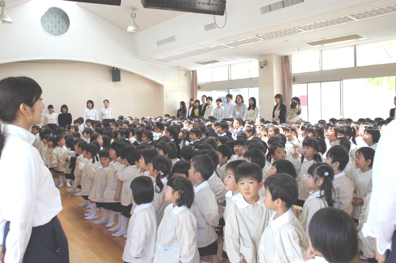 園内放送が流れると、みんな先生のまわりに集まります。そして・・・