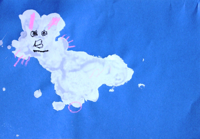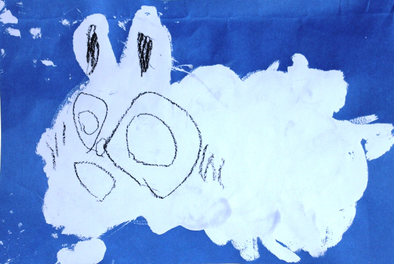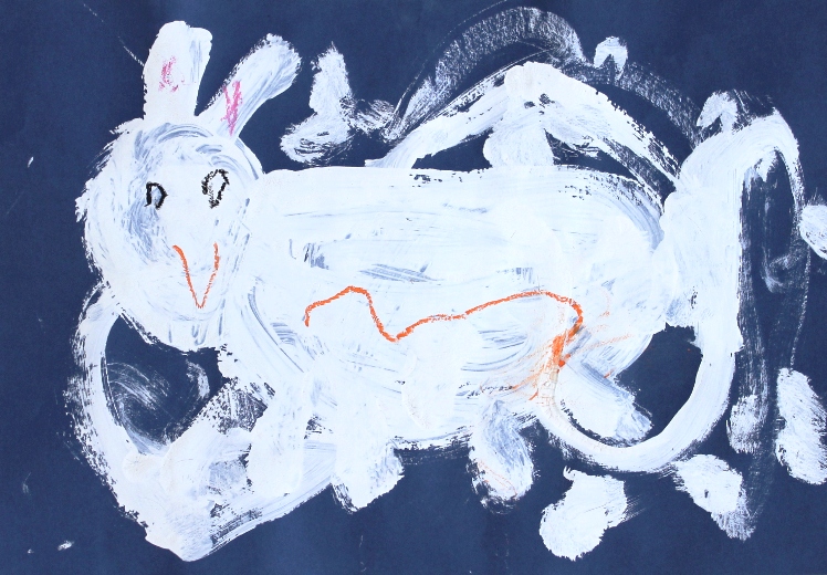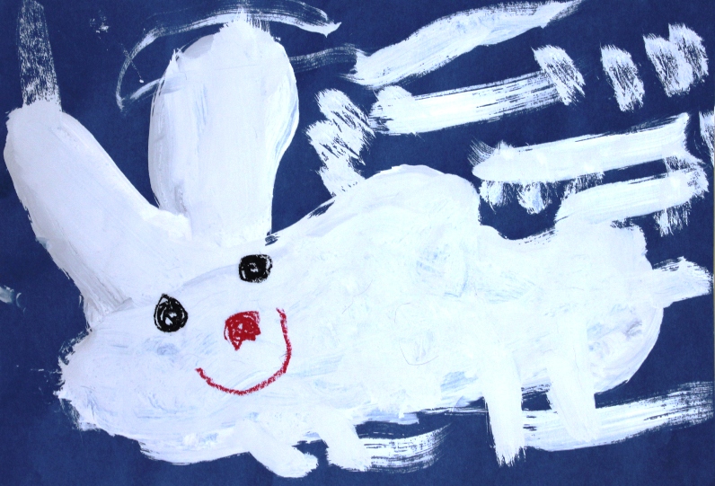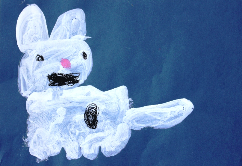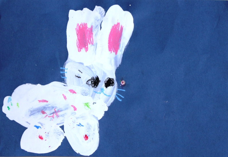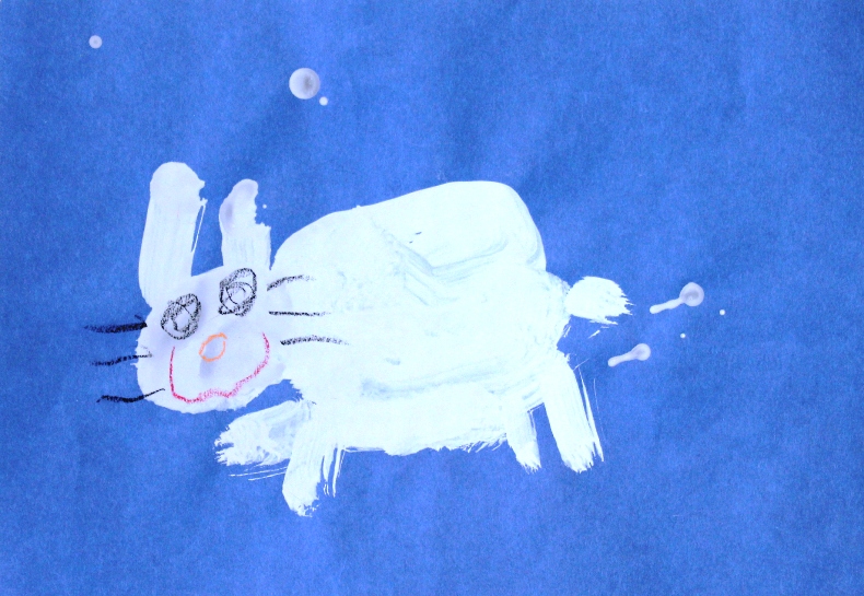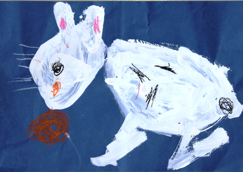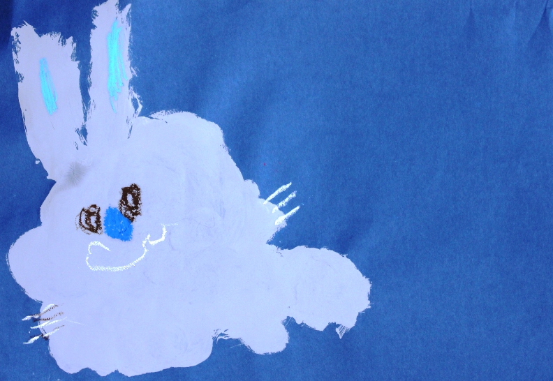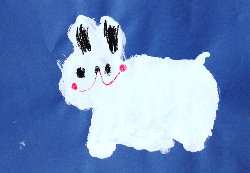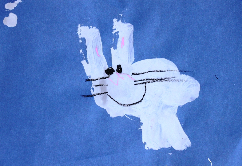 その後、クレパスで細かい部分を描き、かわいいウサギさんがたくさんできあがりました。