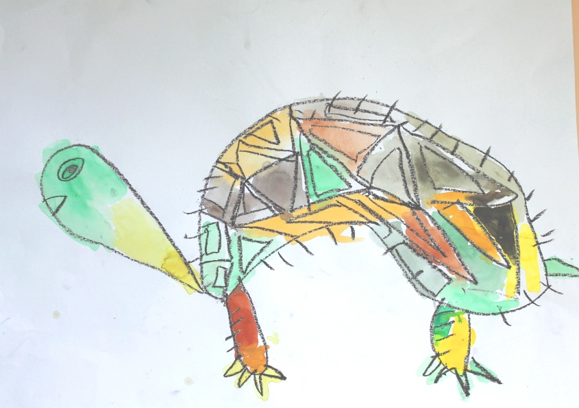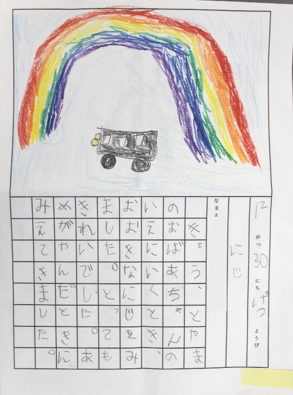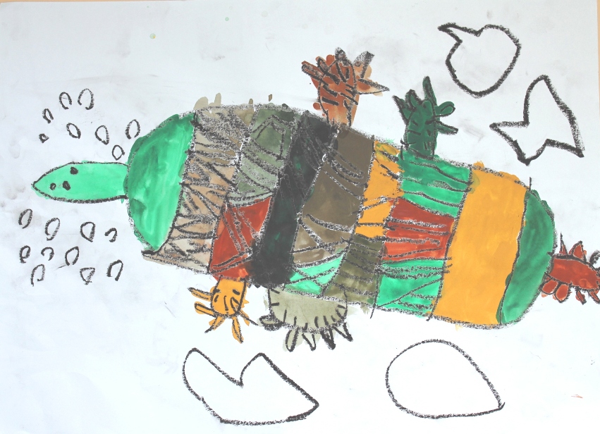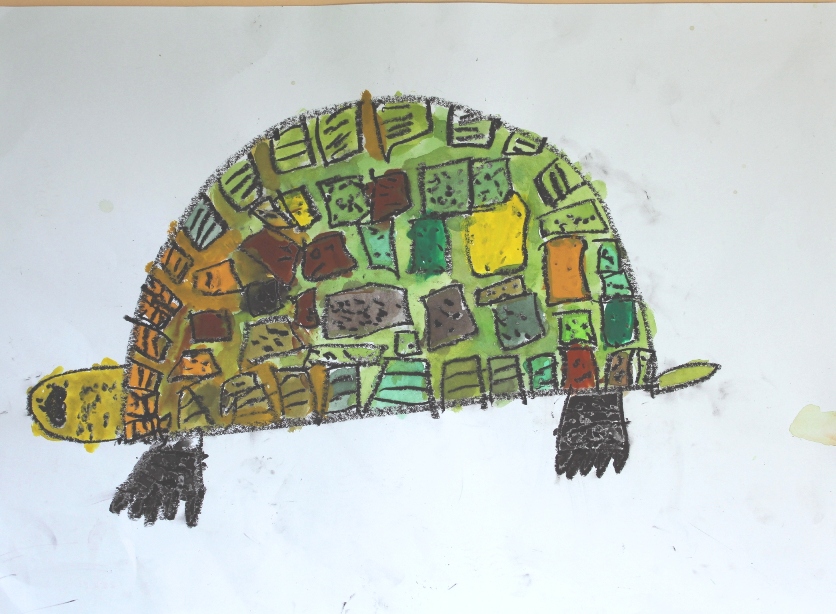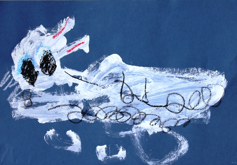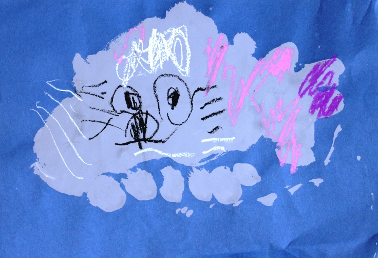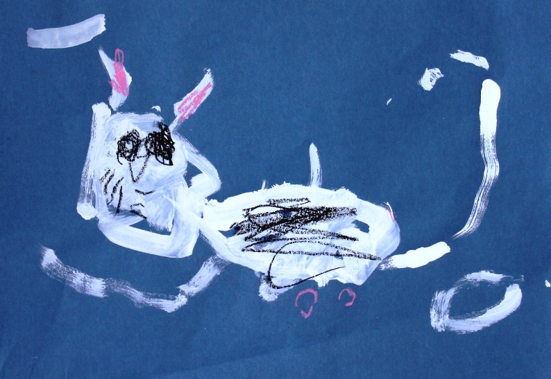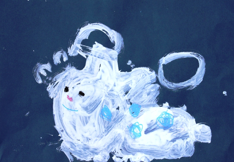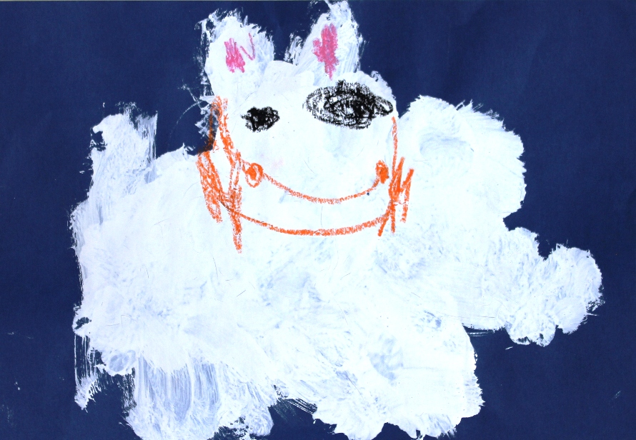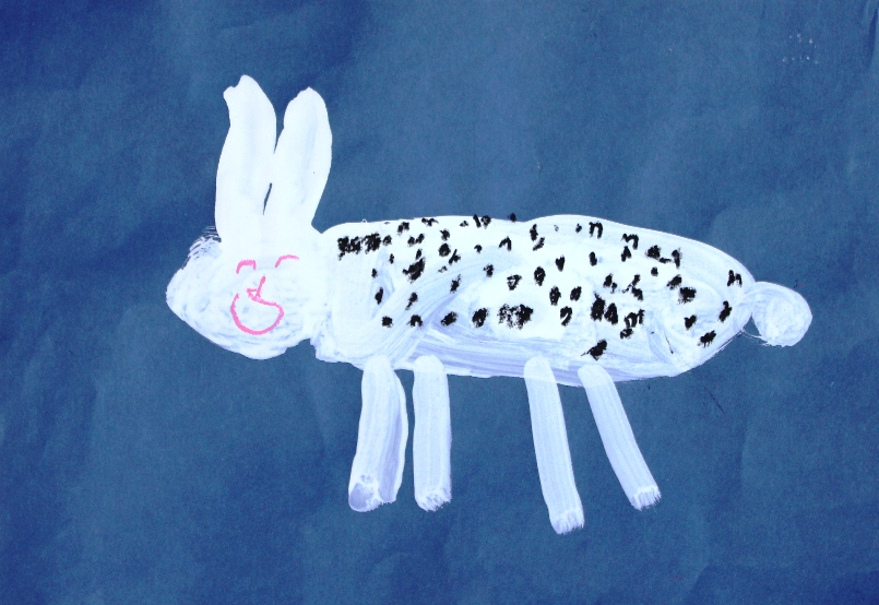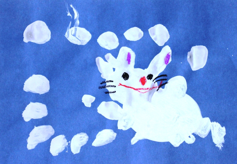 その後、クレパスで細かい部分を描き、かわいいウサギさんがたくさんできあがりました。