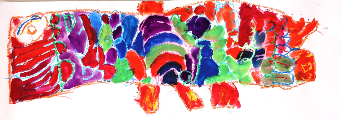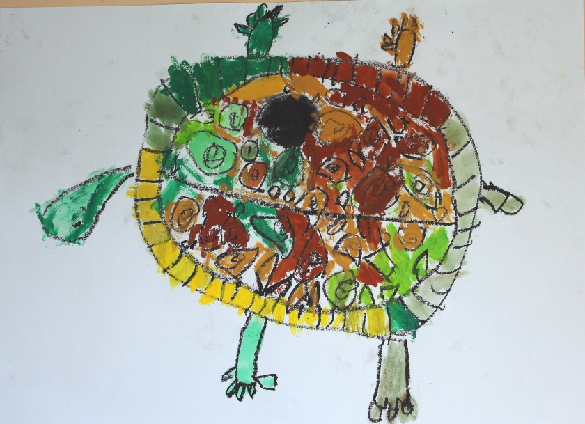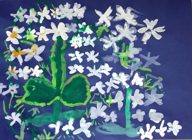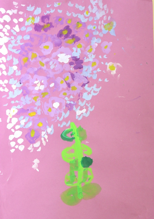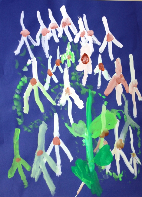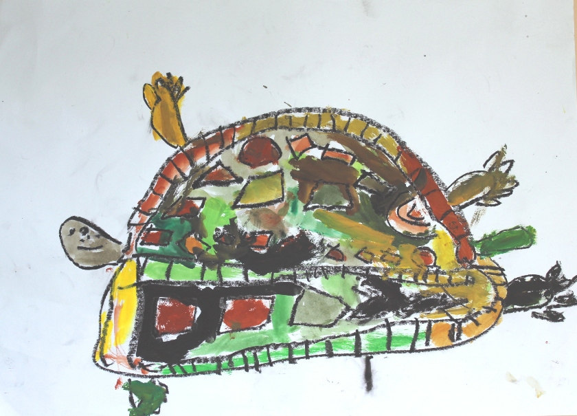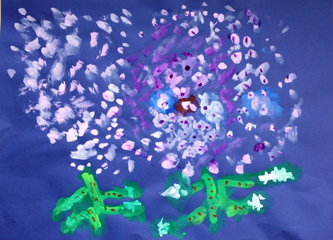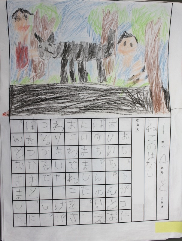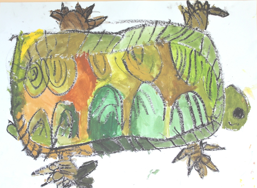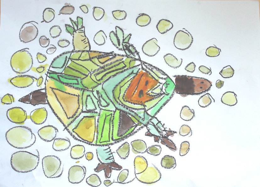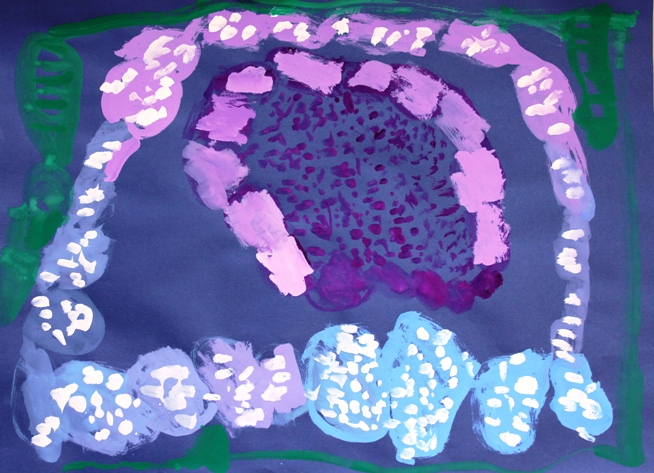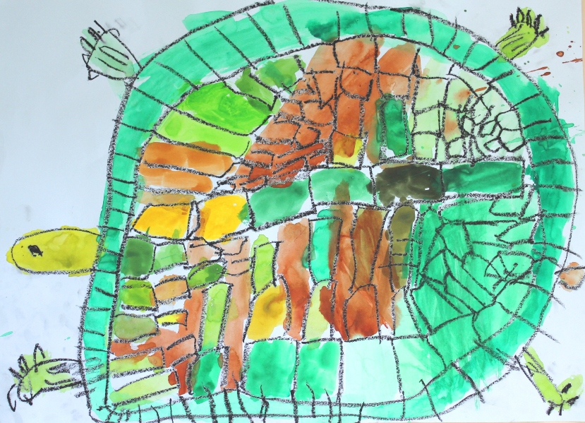 その後、クレパスで細かい部分を描き、かわいいウサギさんがたくさんできあがりました。