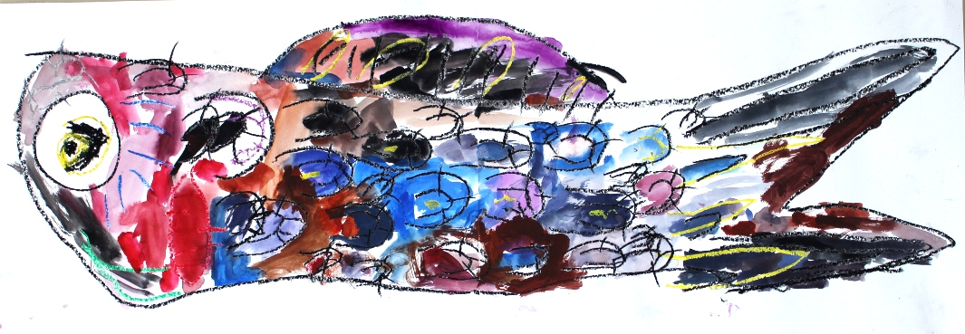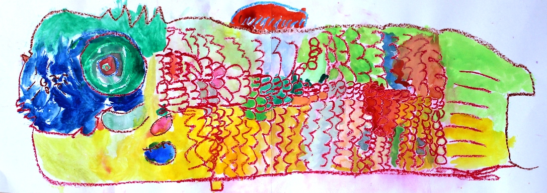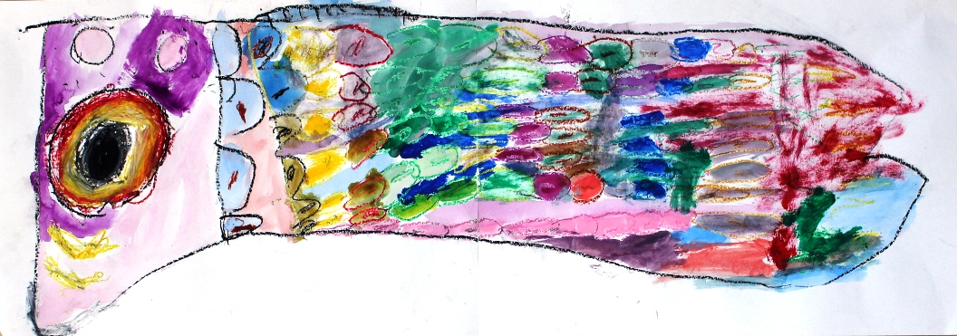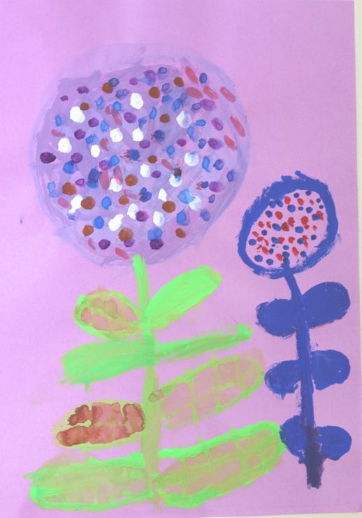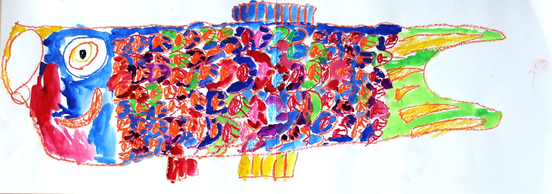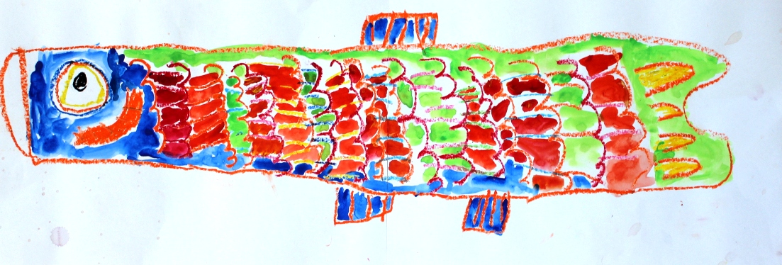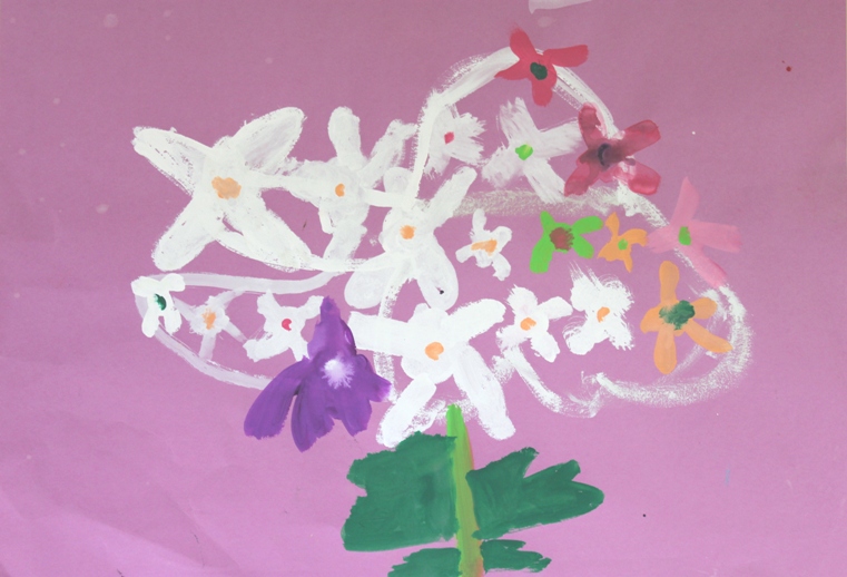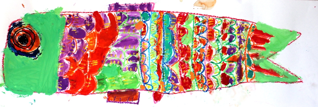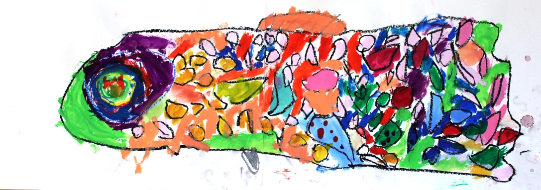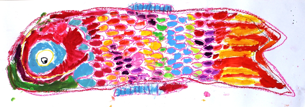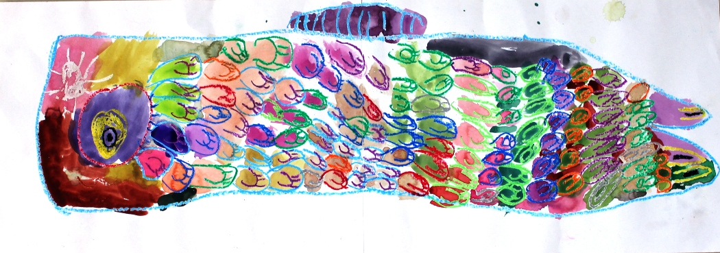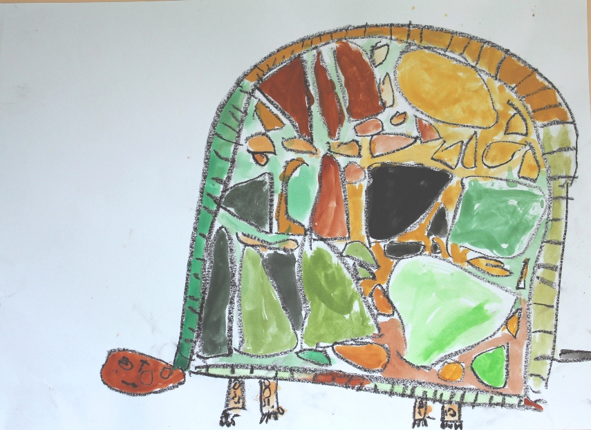 その後、クレパスで細かい部分を描き、かわいいウサギさんがたくさんできあがりました。