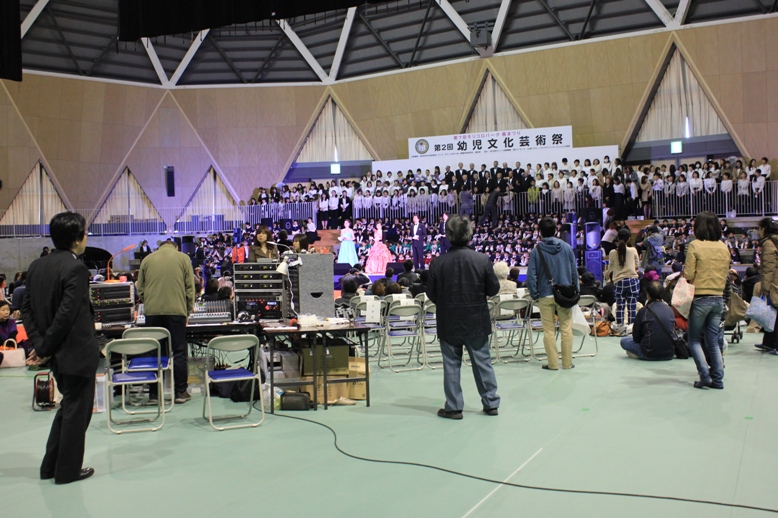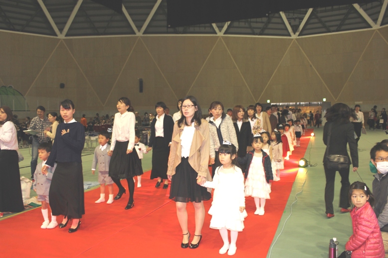 楽しんだ後に(体験前の子もいます) 第一ホールに集まって