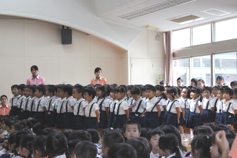 会の締めくくりに、保護者の皆様、園児、職員全員で花火を歌いました。