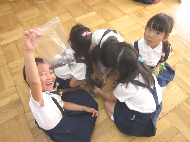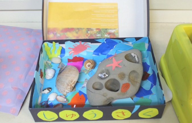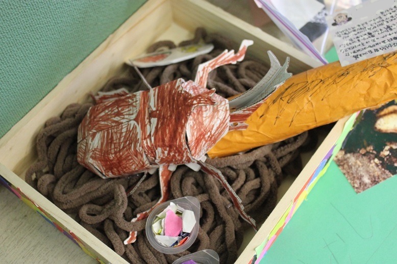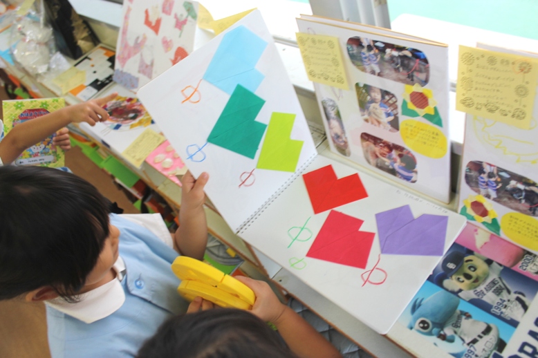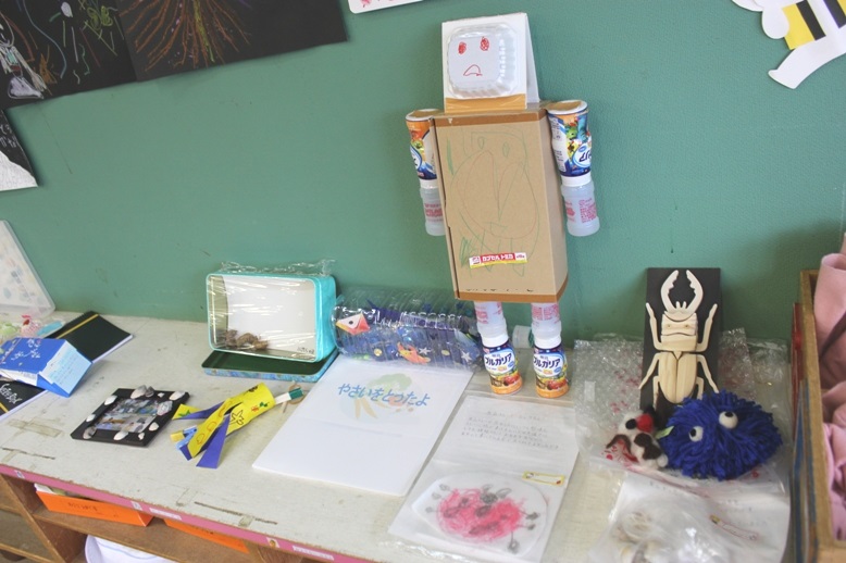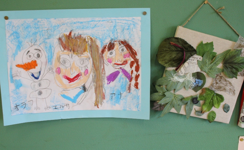 芋掘りが終わると、展覧会があります。お絵描きや土粘土、それからみんなで力を合わせて作品を作りましょうね。