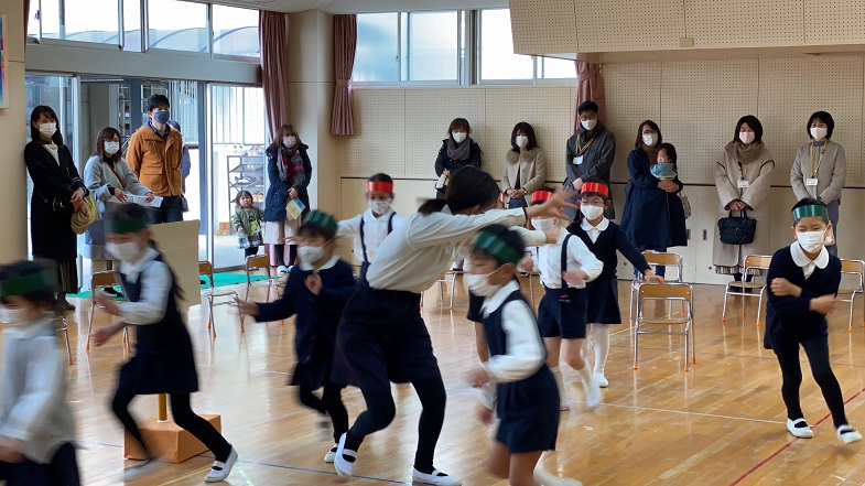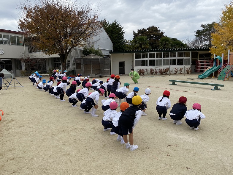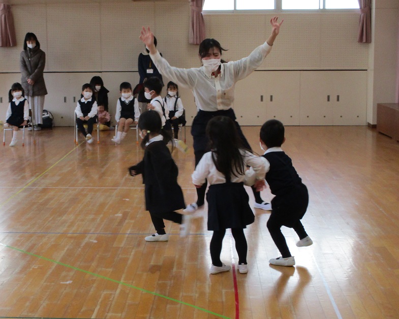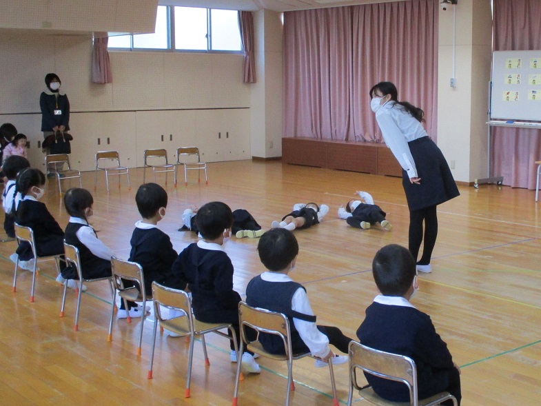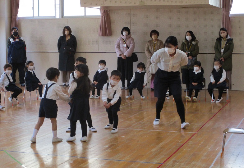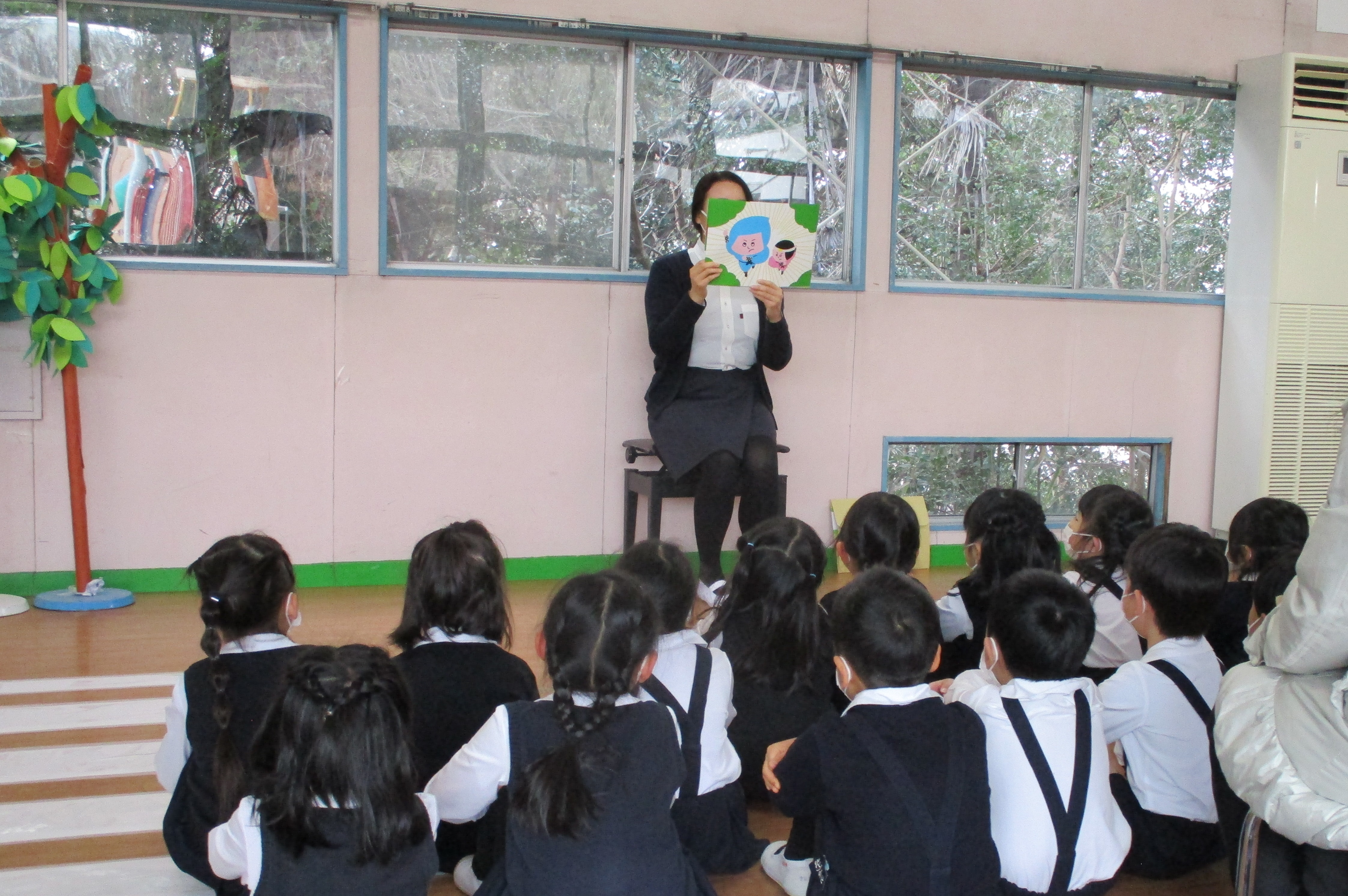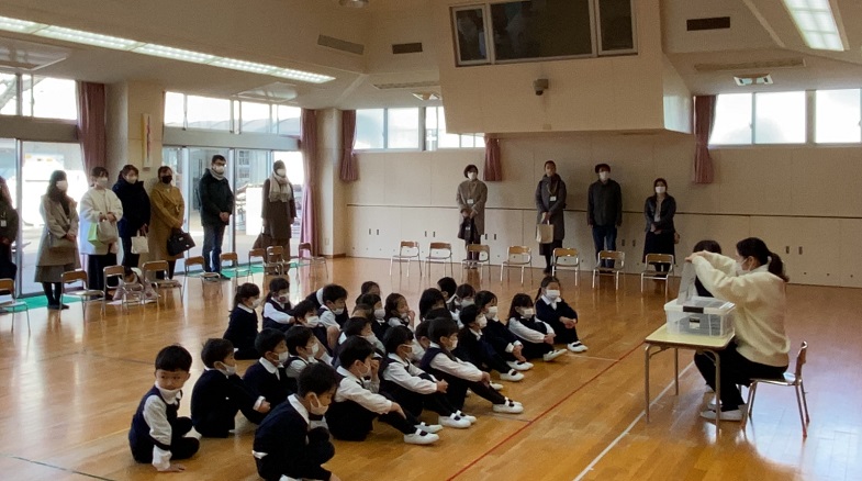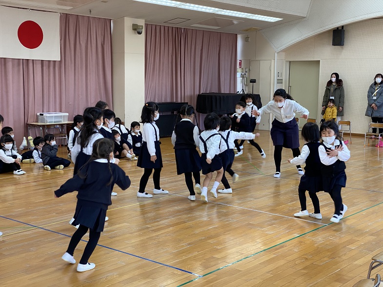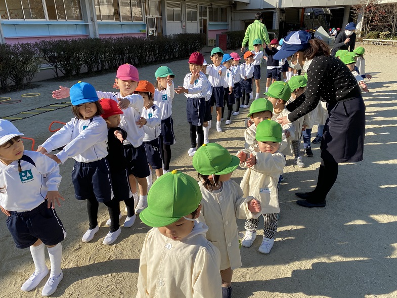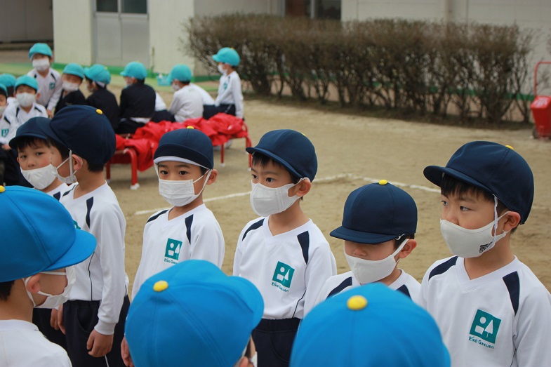 幼稚園に到着し、終わりの式。