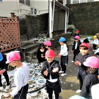 「先生、見て~~!」「雪、冷たーい!!」