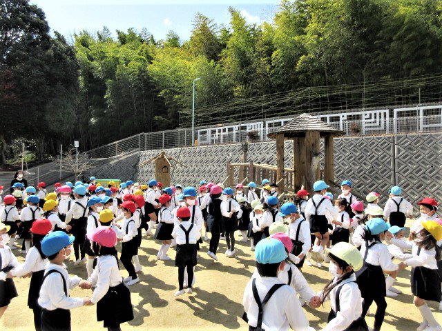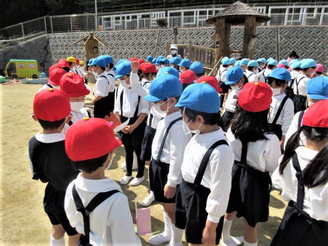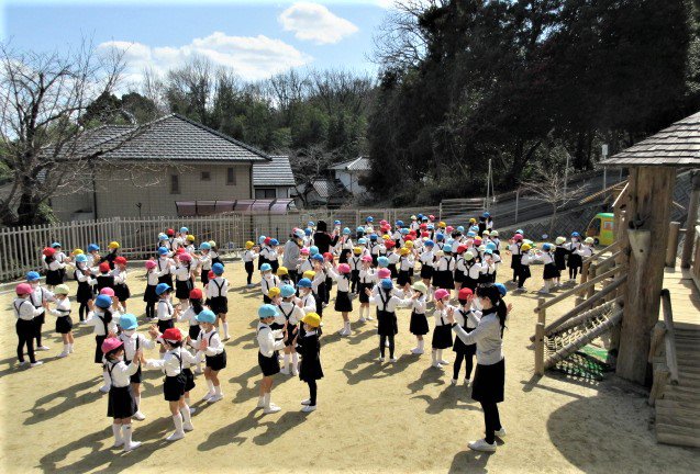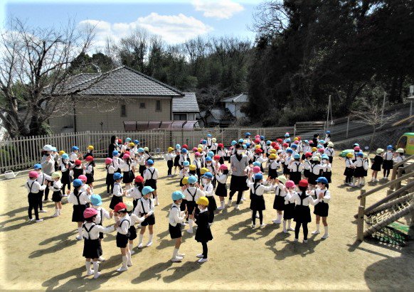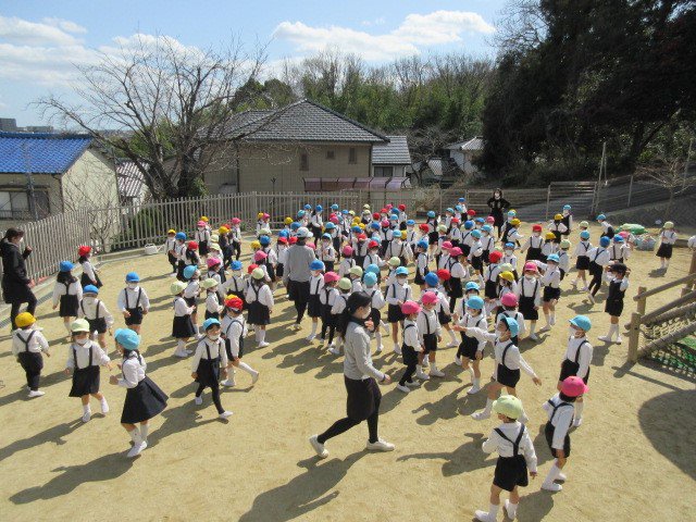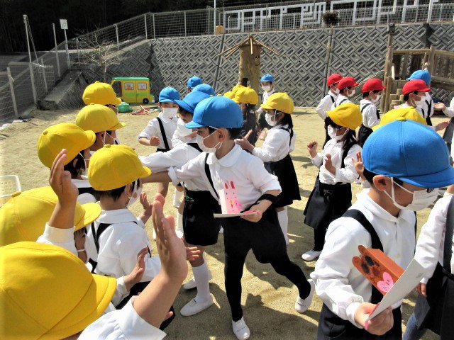 先日、ぽかぽかの春の陽気の中、年長青組さんのお別れ会を行いました。