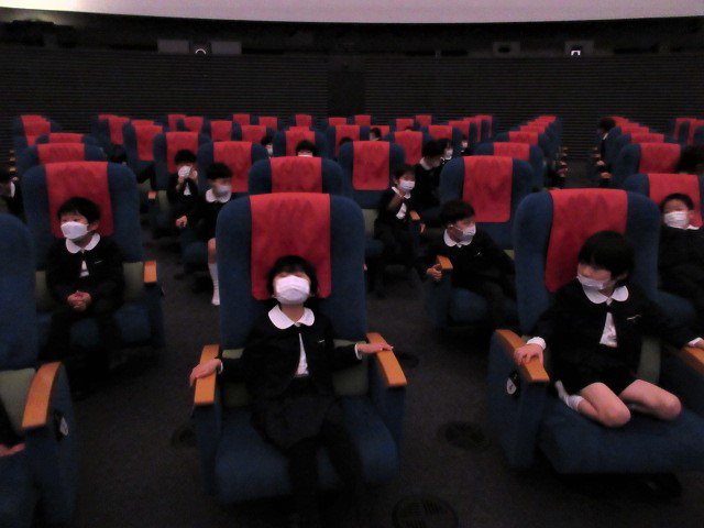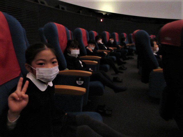 年長・青組は感染予防をしっかりし、名古屋市科学館のプラネタリウム観覧に出掛けました。