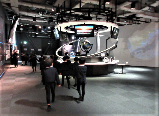 館内へ入りエレベーターに乗り、階段を上り行きついた場所は...外から見た球体!