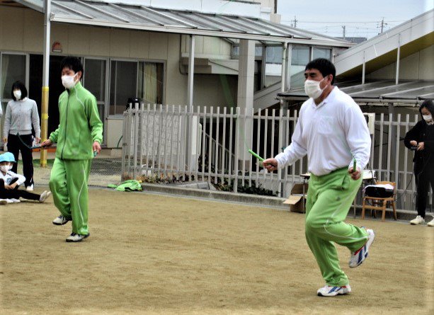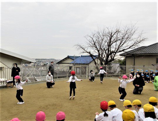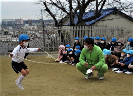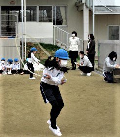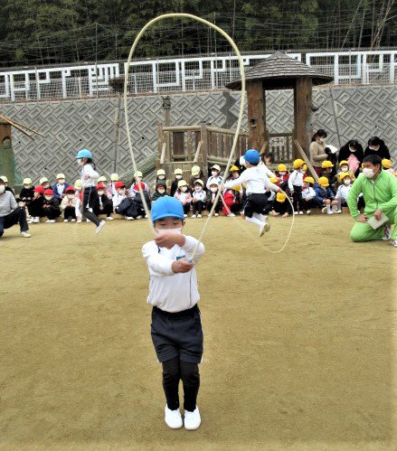 年長・青組さんは、小学校へ行って、もっと色々な跳び方に挑戦して頑張ってくださいね!!