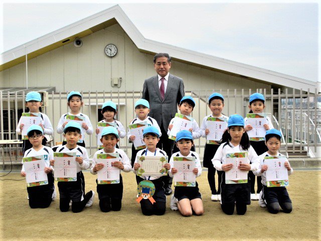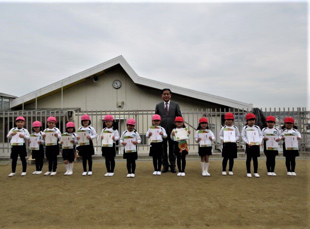 チャンピオンになったお友だちは、園長先生から表彰状とメダルを頂きました。