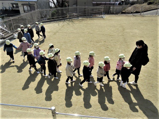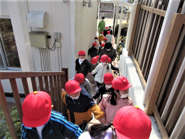 幼稚園駐車場裏に到着!幼稚園まであと少し!みんなで頑張ろう!