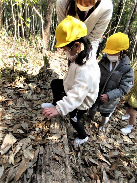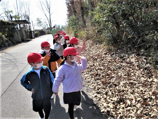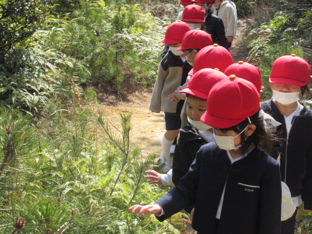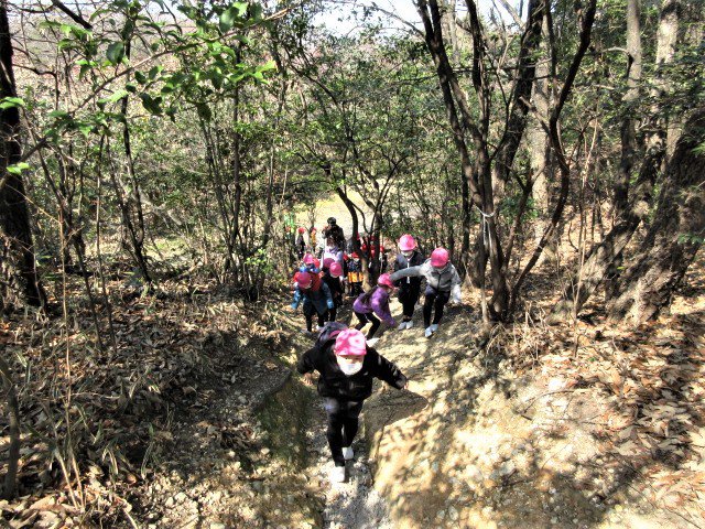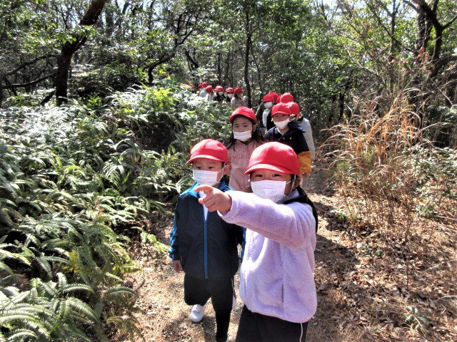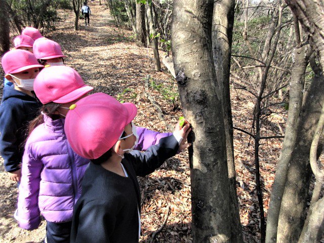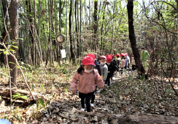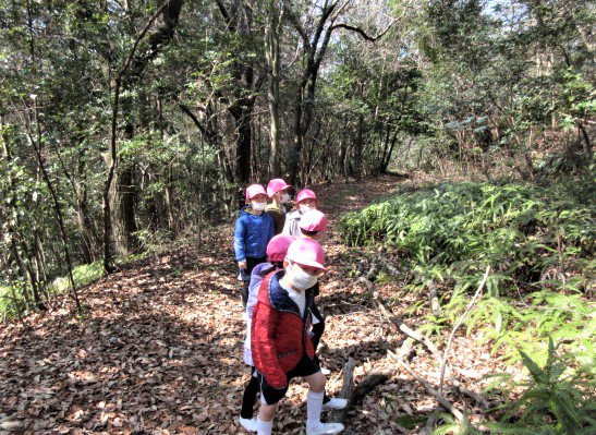 令和4年3月8日(火)幼稚園の裏にある山「うるおいの森」に出掛けました。