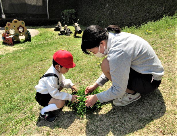 たんぽぽ見つけや四つ葉🍀のクローバ探し・・・。あるかな~~。