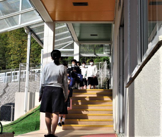 歩きコースの皆さんも「おはようございます!」お母さんと一緒に元気よく登園!