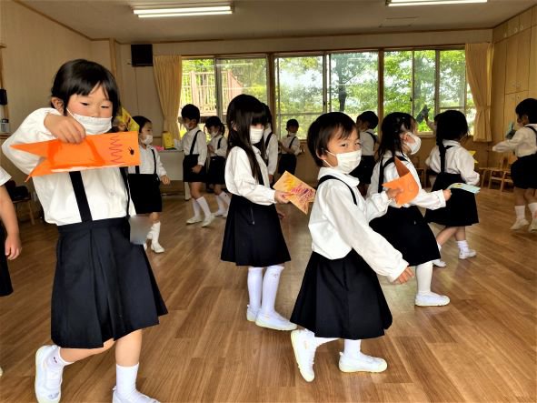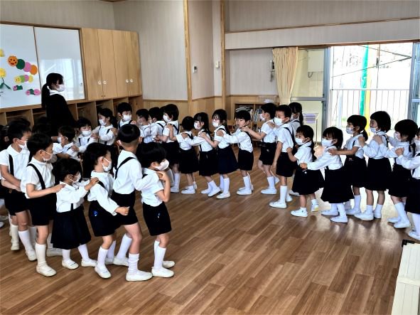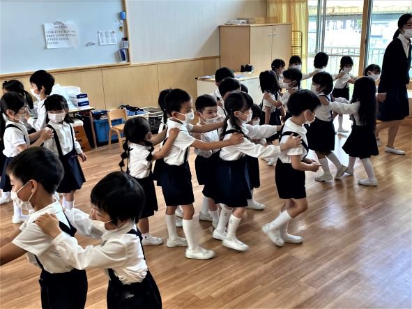 じゃんけんに負けたお友だちは、列車の後ろに連なります。ドンドン長くなっていきましたよ!