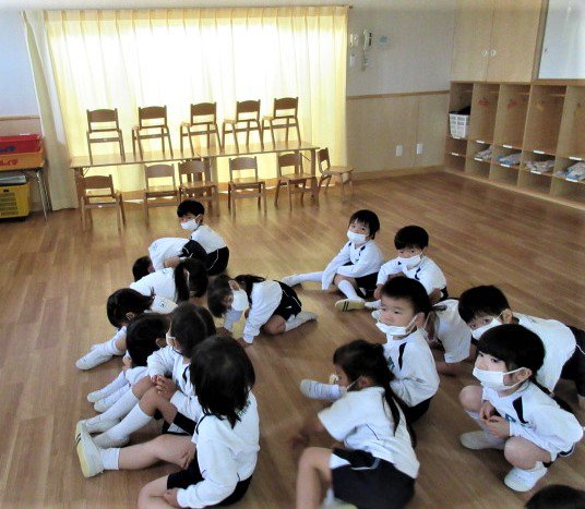 もし、幼稚園の中に不審者が侵入してきたら、今日の訓練のように、すぐに先生の近くに集まり、安全な場所に避難しましょう!