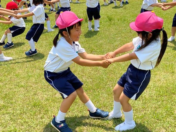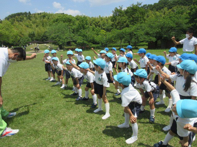 さあ、遊んだ後は、体操です!体操の前の掛け声「がんばっていくぞー」「オー!」