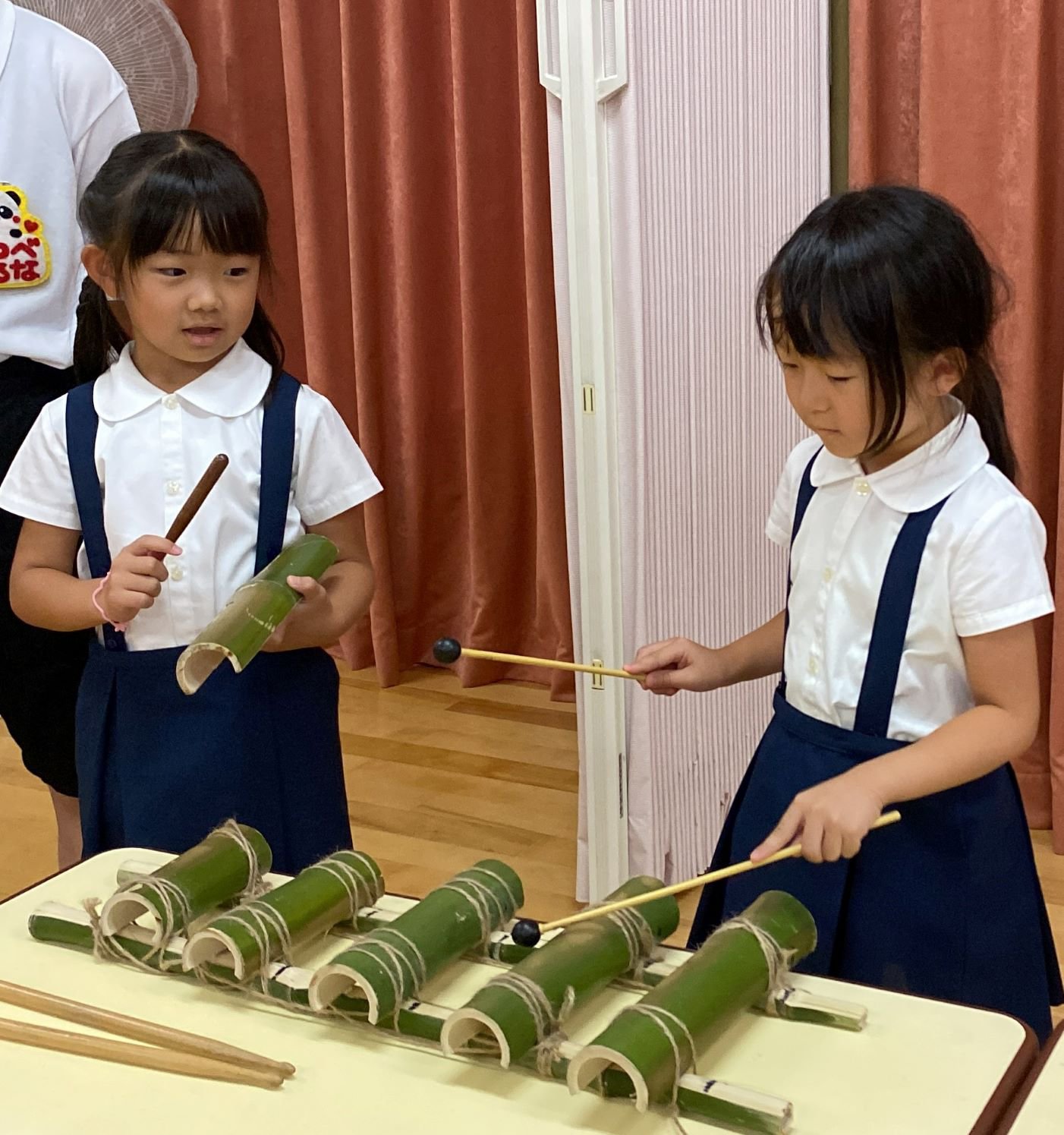 竹独特の響きが心地良く、竹を叩く感触も初めて味わった子供たちでした。