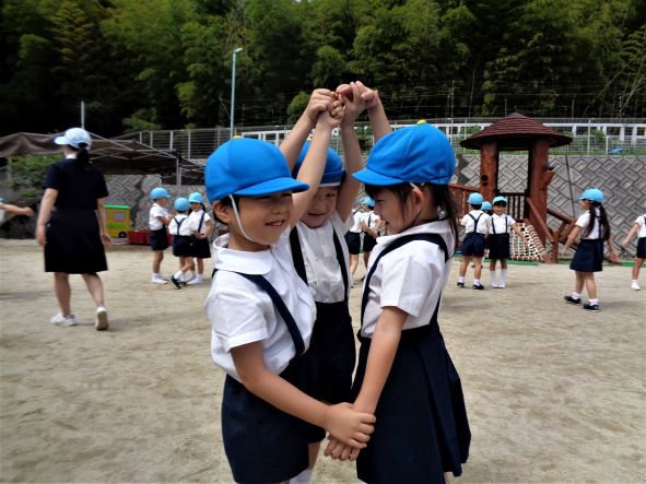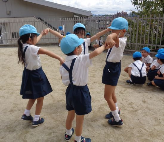 年長・青組さんは、晴れた日にみんなで雲を見に園庭へ行きました。「うろこ雲だ!」「ふわふわしていておいしそう!」と楽しげな声が聞こえます。