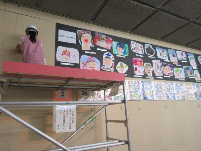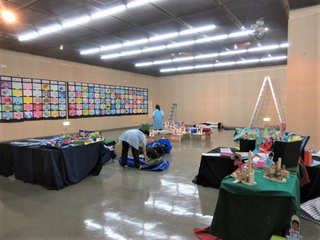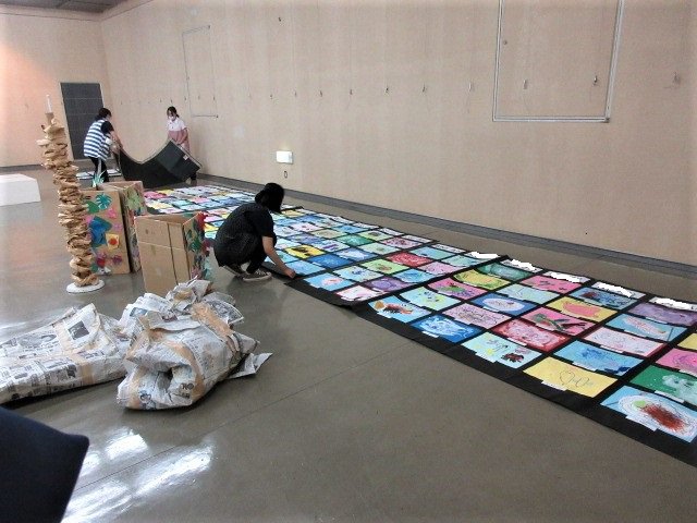 前日の午後から、職員で絵や作品を展示します。