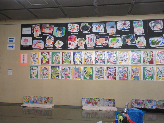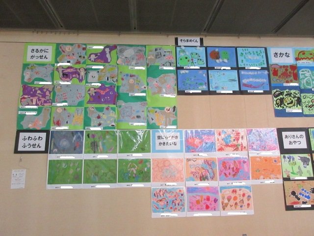 4月から、子どもたちが頑張って作りあげた絵画や個人作品、たてわり(コースごと)の作品など・・・450点ほど!!