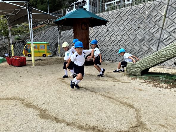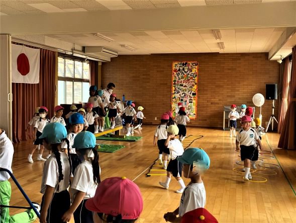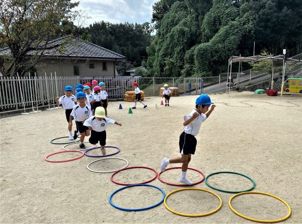 たくさん見てもらおうね!(自由保育参観NO2) 令和4年10月4日(火) 今日も朝から、お父さん、お母さん達が見に来てくれていますよ。 《園庭 サーキット》フラフープや三角コーン、すべり台を使ってサーキット!たくさん走りましたね!! 《森の運動場 サーキット》 森の傾斜をつかって、跳んだり、くぐったり、登ったり・・・。 《ホール サーキット》 朝の自由遊び、朝礼、体育コーナーあそび、各クラスでの遊びなど色々な場面を参観していただきました。ありがとうございました。 子どもたちの元気いっぱいな姿は、いかがでしたでしょうか・・・。 前の記事 次の記事