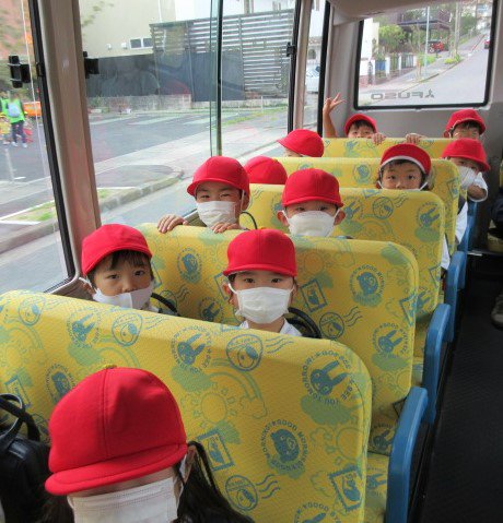 楽しかった園外保育もおしまいです。帰りのバスの中では「楽しかったね!また行きたいね!」と大満足な子どもたちでした!